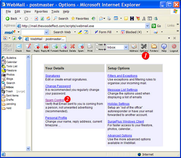 | 2)Click the 'Spam Control ' link |